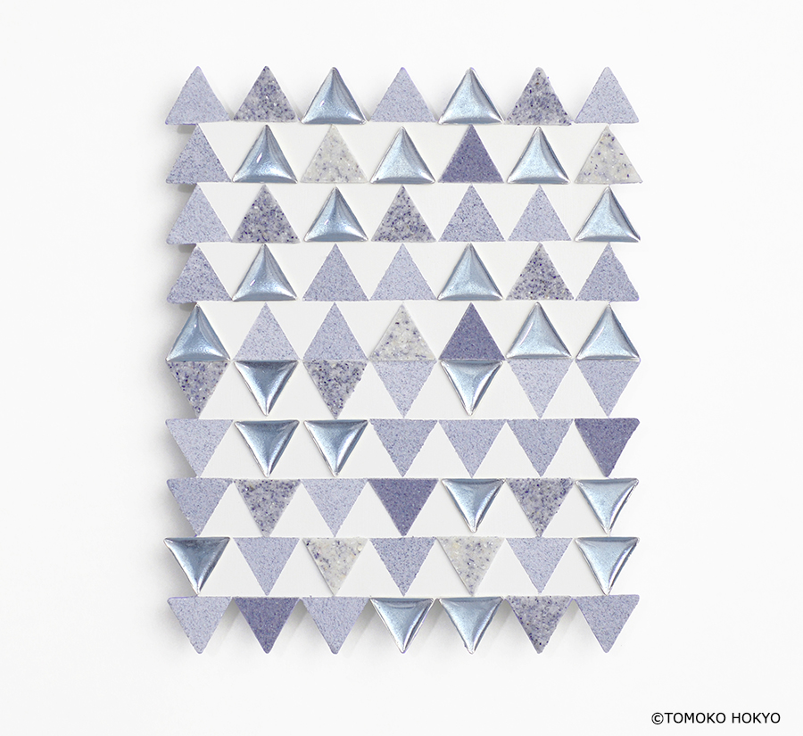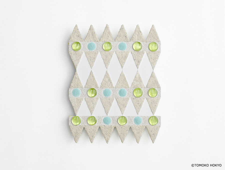 (H 19 x W14.5 x D 0.2cm) 七宝焼(ガラス釉薬、銀板)、かつて使われていたティーカップ、方解石、アクリルメディウム、チタニウムホワイト、アクリル絵具(側面)、綿布、アルミニウム